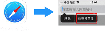 2.打开苹果safari浏览器,粘贴并前往后即可下载